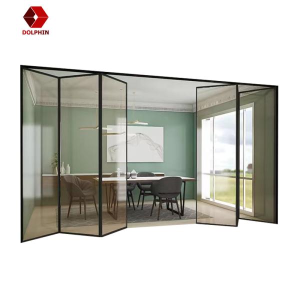 Standard Waterproof Accordion Doors Aluminum Sliding Three Folding Glass Door